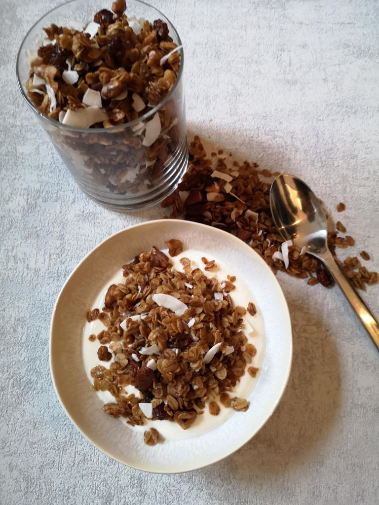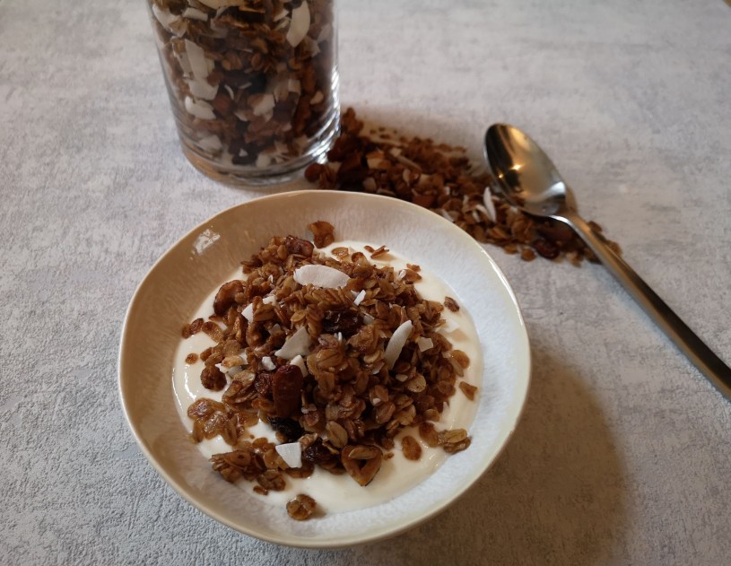 Het voordeel van je granola zelf maken is dat je zelf kan bepalen wat voor smaken je combineert. Daarnaast is het gemiddeld gezien veel gezonder dan wanneer je granola kant en klaar (bijvoorbeeld in een supermarkt) koopt. Deze granola bevat minder verzadigde vetzuren én minder suikers dan de meeste granola’s die je kunt kopen.