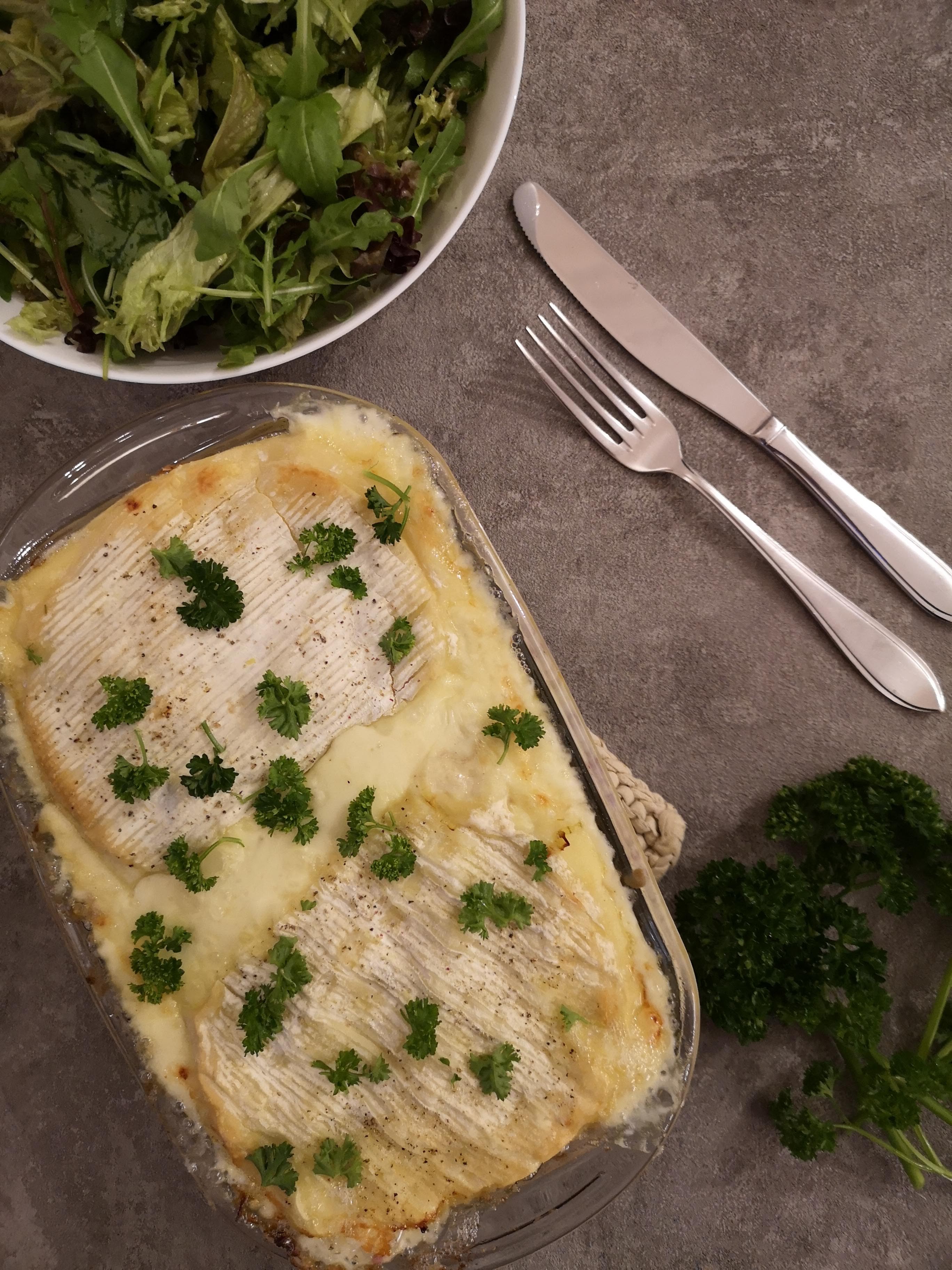 Deze ovenschotel heeft als basis een kaas genaamd Reblochon. Dit rood-schimmel kaasje draagt een keurmerk wat ervoor zorgt dat het alleen gemaakt mag worden in de Franse Haute-Savoie, een regio in het Alpengebied tegen Zwitserland aan. Deze ovenschotel werd daar vroeger dan ook gegeten door de boeren na een dag lang hard gewerkt te hebben in de bergen. Tsja, ik kan me best voorstellen dat ze na zo’n werkdag zin hadden in deze stevige maaltijd…