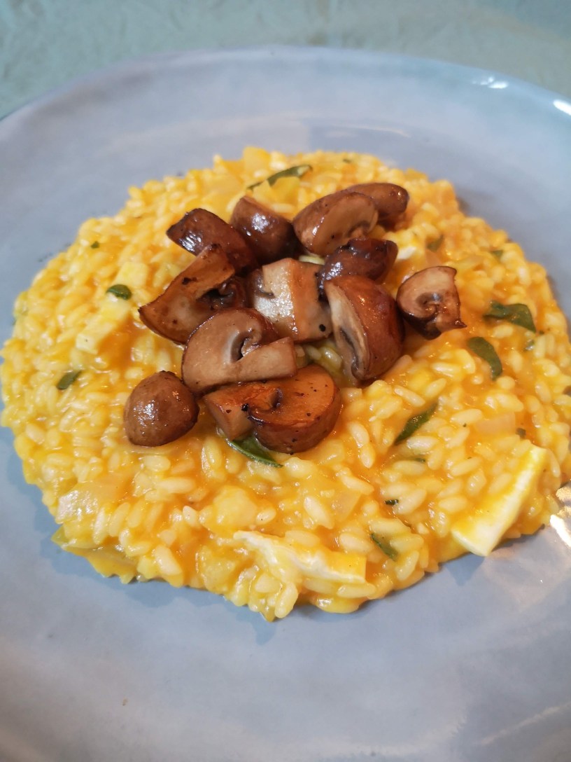 Pompoenrisotto met champignons, salie en geitenkaas