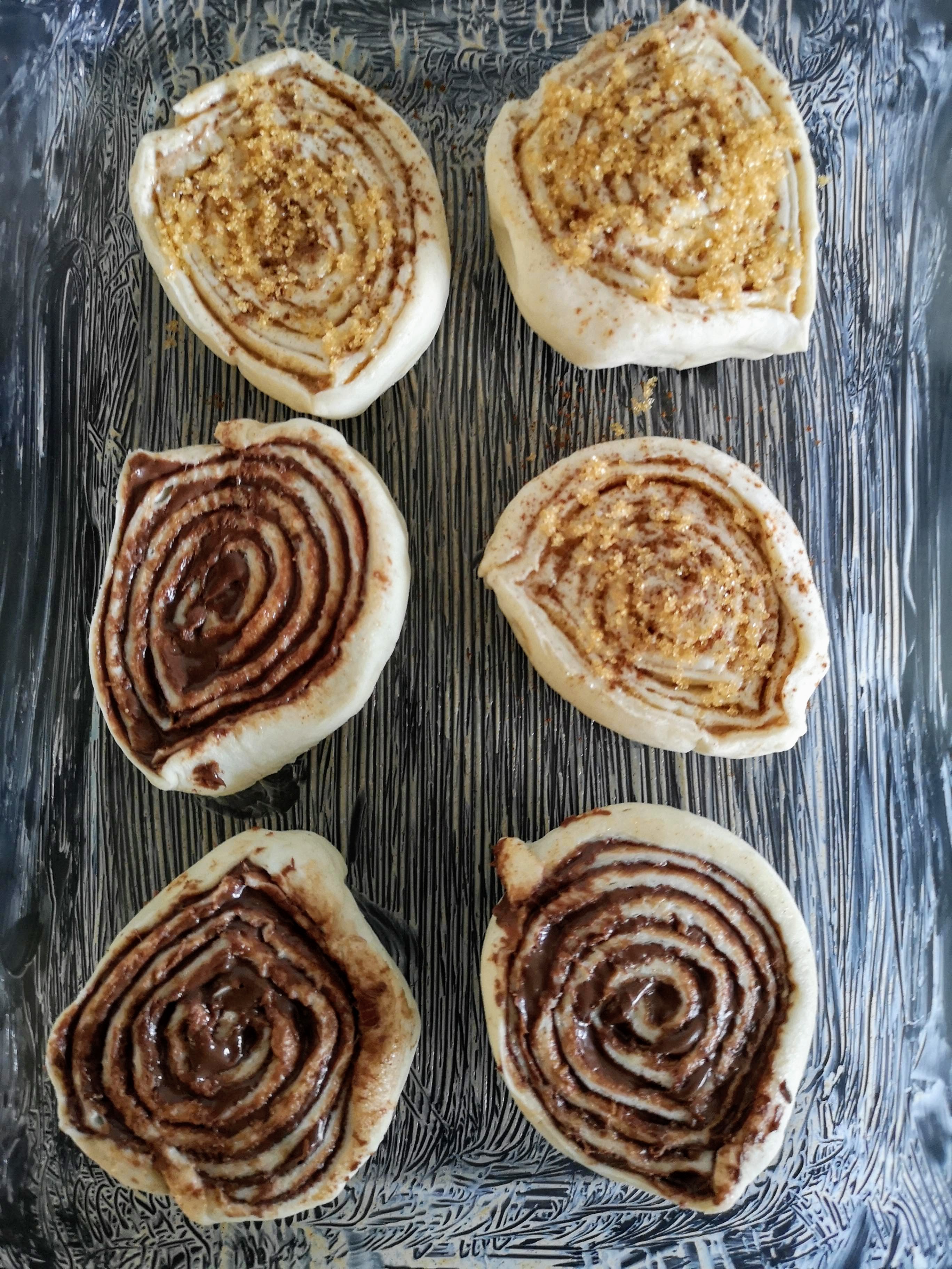 Ingrediënten (voor 3 cinnamon rolls en 3 chocoladebroodjes)