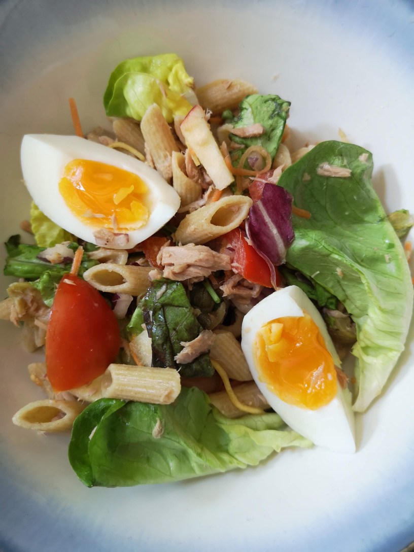 Pastasalade met tonijn, appel en ei
