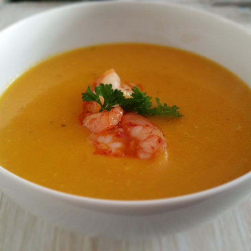 Met dit grijze weer kan ik echt dromen van een kop dampende, hartverwarmende soep. Deze pompoensoep met pittige garnalen is snel klaar en staat bij mij dan ook regelmatig op het menu. Door de pompoen eerst in de oven te roosteren krijgt deze een diepere smaak. Pompoen is ook een hele goede drager van smaken. Door deze te combineren met kruiden en specerijen neemt de pompoen die smaken op, waardoor dit een lekker kruidig soepje wordt. Heb je al trek gekregen? Let’s go!