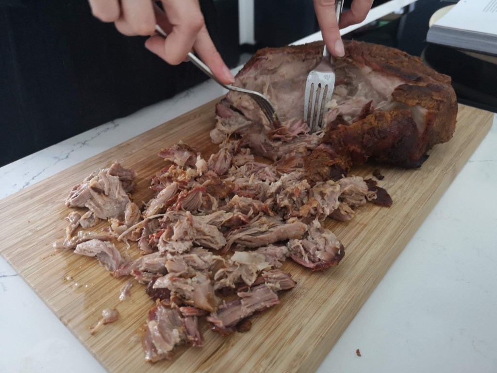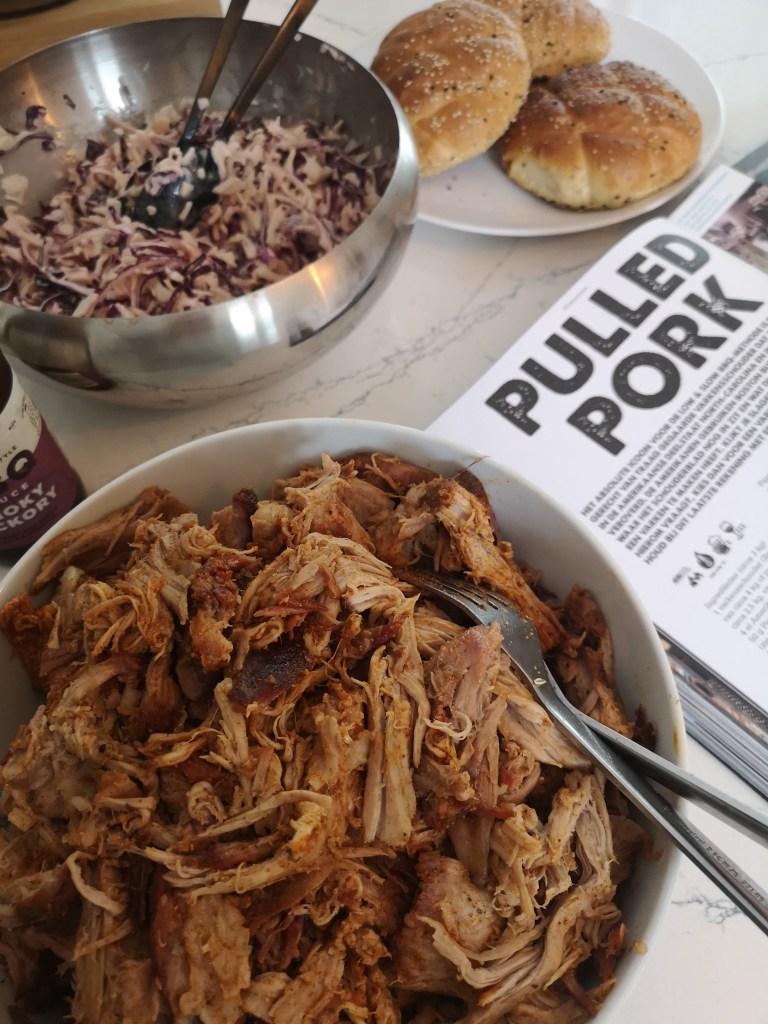In het boek wordt veel meer uitleg gegeven, bijvoorbeeld ook wat voor stuk varkensvlees je het beste kunt gebruik. Aangeraden wordt een Boston Butt, maar omdat wij die niet konden krijgen hebben we voor procureur gekozen. Afhankelijk van je gekozen stuk vlees kan de bereidingstijd verschillen.
